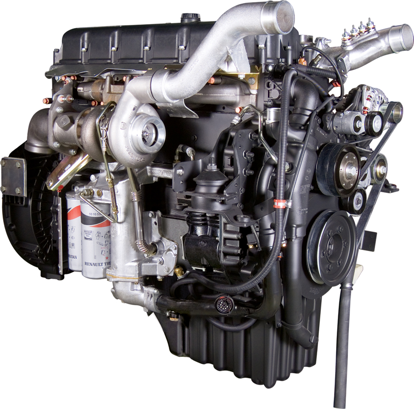- Двигатель оснащен турбокомпрессором с промежуточным охлаждением, что способствует увеличению удельной мощности. Также предоставляется возможность установки воздушного компрессора и компрессора кондиционера.