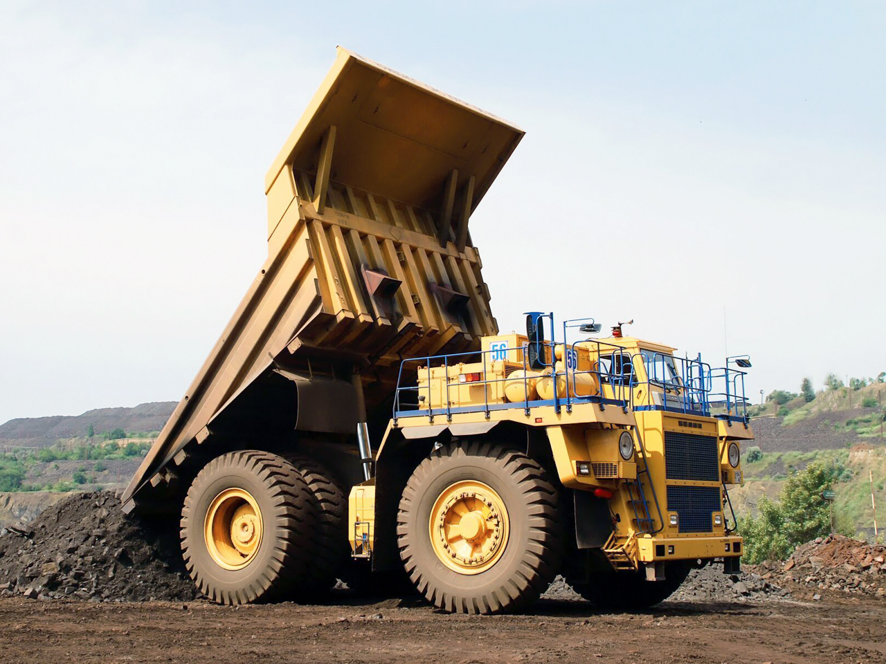 Грузовик этой модели используют для перевозки горных пород в насыпном виде и разработки полезных ископаемых.