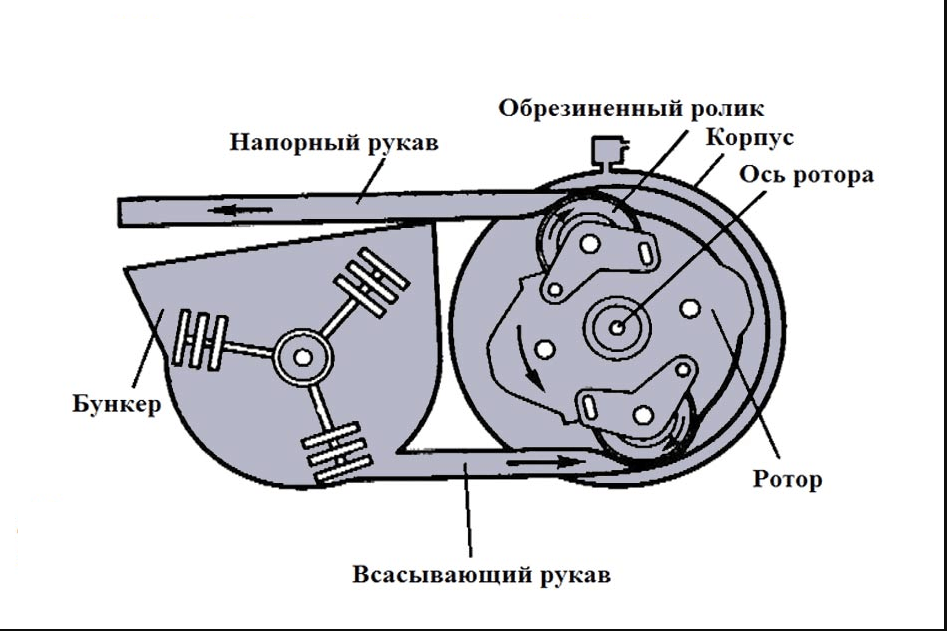 Оборудование имеет простую конструкцию. Его работа основана на методе выдавливания бетонной смеси. Оборудование состоит из приемного бункера, ротора, который оснащается роликами и приводом, корпуса.