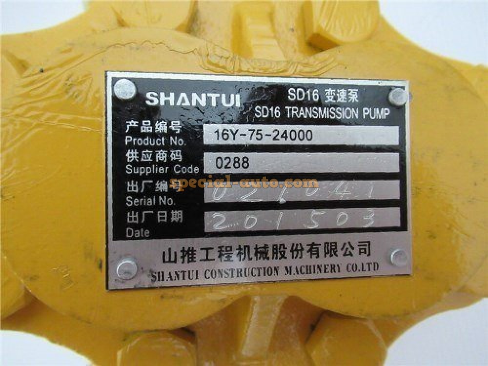 Силовые агрегаты бульдозера Shantui SD16 оборудованы системой прямого впрыска топлива. Рабочий объем стандартного двигателя составляет почти 10 л (9,7 л). Диаметр цилиндра составляет 126 мм, ход поршня равняется 130 мм. Максимальный крутящий момент — 764 Нм. При всех перечисленных показателях удельный расход топлива бульдозера Shantui SD16 достигает 214 г/кВт*ч.