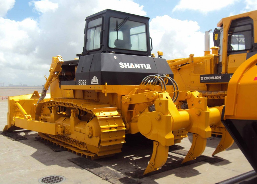 Бульдозер китайского производства Шантуй СД 22 без рыхлителя весит более 23 тонн. Он может эксплуатироваться на уклонах до 30 градусов.