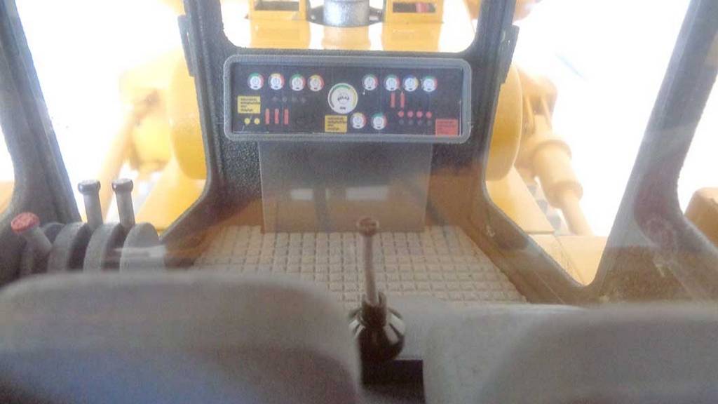 Процесс управления производится при помощи пары рычагов, которые находятся на пульте дистанционного управления. Запустить их можно посредством нажатия на установленную педаль, что принадлежит остановочным особым тормозам. Кроме того, в бульдозере данной марки присутствует надежное автоматическое оборудование, необходимое в процессе резкой остановки двигателя.