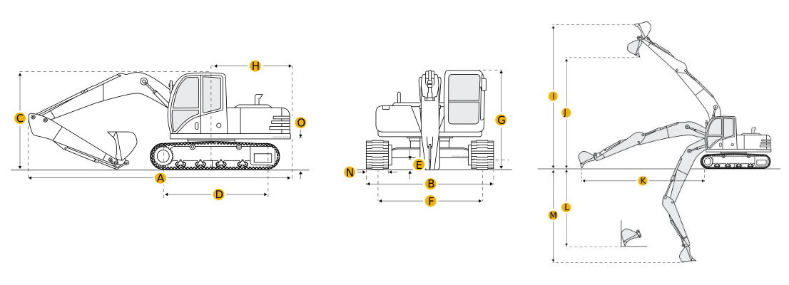 Современная линейка гусеничных экскаваторов Hyundai начинается с модели R35-7, ее вес — 3,3 тонны, мощность двигателя — 36,7 л.с., глубина траншей – 3,2 метра. Экскаватор имеет компактные размеры и востребован при работе на небольших участках, то есть там, где крупногабаритной технике сложно подобраться. Вес экскаваторов среднего класса колеблется от 11 и 13 тонн.