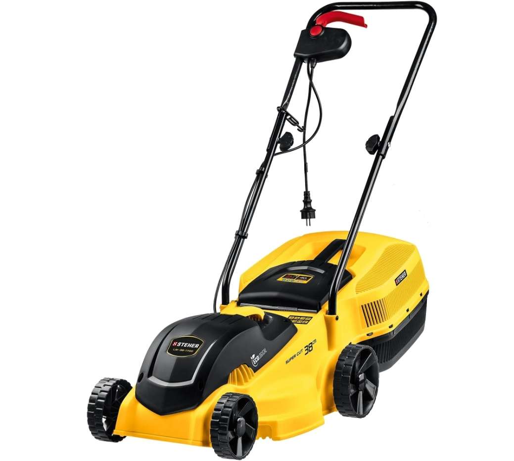 Сетевая газонокосилка STEHER 1700 Вт LM-38-1700 – незаменимый помощник в уходе за газоном на садовых участках и придомовых территориях. Для простоты съема и установки травосборника предусмотренна рукоятка, что позволяет сократить время на его опустошения. Питание от электросети делает газонокосилку экологичной, так как она не выделяет вредных выхлопов. Складная рукоятка позволяет экономить место во время хранения и транспортировки инструмента.