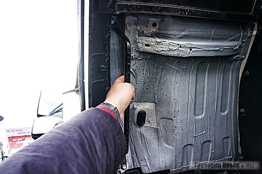 Доступ к рабочему месту водителя облегчают опорные рукояти и рифленая площадка.