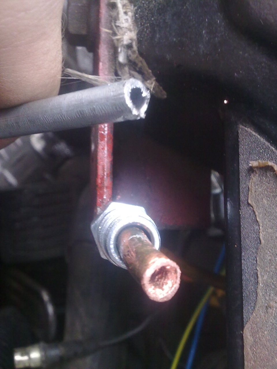 Срезал “штуцера” с штатной и жиговской трубок, надел жиговский “штуцер” на уазовскую трубку, развальцевал