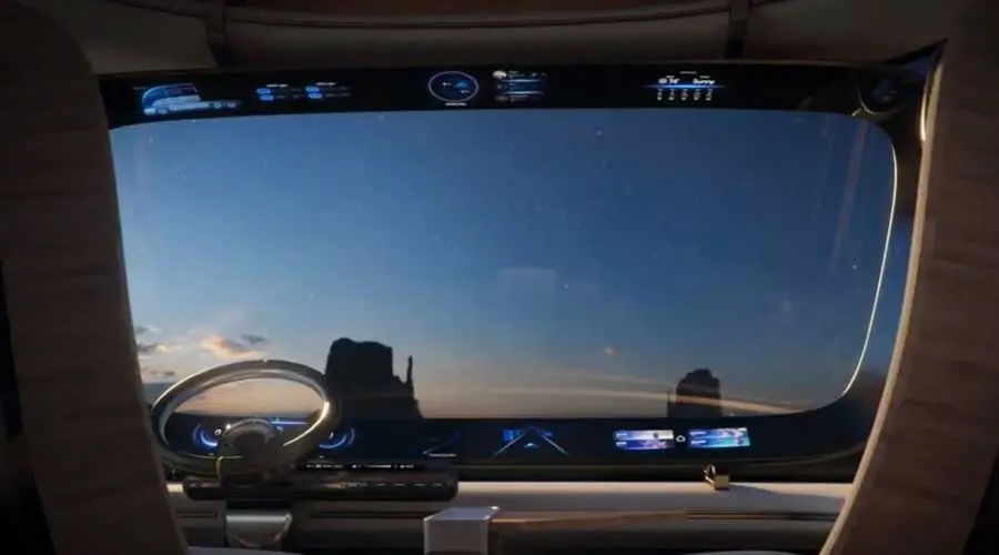 Hyundai HDC-6 Neptune has a futuristic cabin just like a concept car. The A-pillars have screens so they show what is on the other side. The cabin has a small living space that includes a kitchen, toilet, and shower. It also includes sleeping space for two. In autonomous mode, the entire windshield changes into a movie screen.