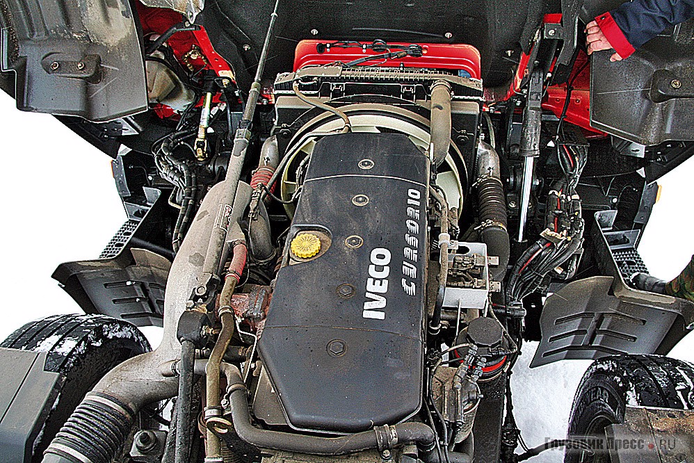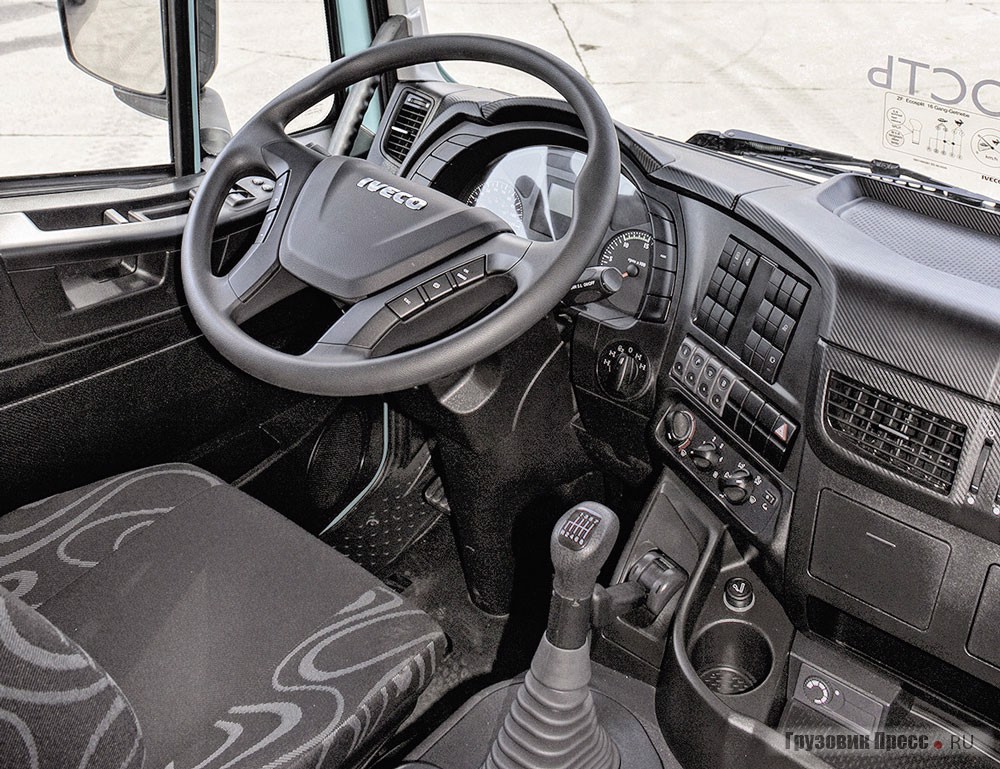 Двигатель Cursor 10 не назовешь тихим, но благодаря хорошей шумоизоляции кабины в салоне его практически не слышно. На установившихся скоростях можно уловить лишь шелест аэродинамических шумов и легкий свист турбонагнетателя, дизельного рокота в салоне просто нет. Подвеска кабины, пожалуй, чересчур мягкая. При движении в колее, что для наших до рог не редкость, кабину заметно раскачивает. Зато в сочетании с пневматическим креслом такая подвеска способна «съесть» любую неровность.