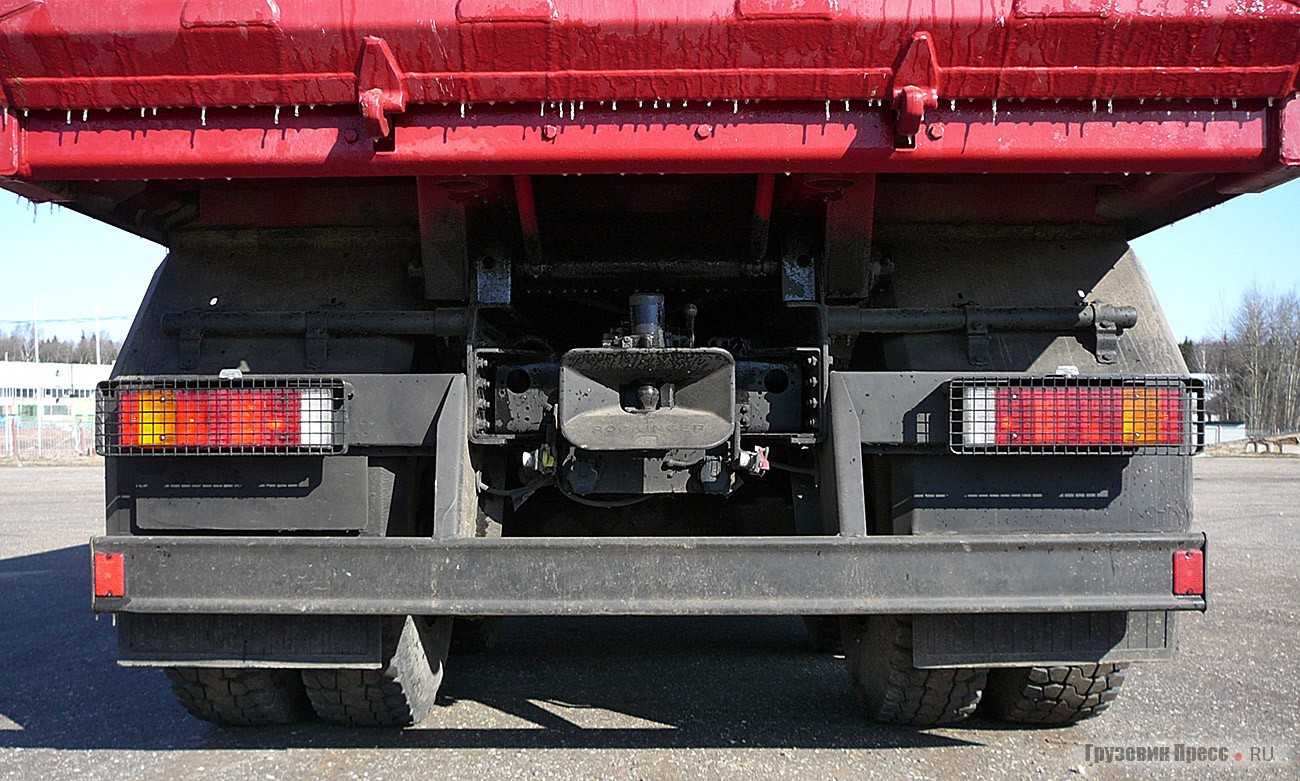 Тент, укрывающий груз в случае необходимости, естественно, присутствует. А чтобы порода при погрузке «не проверяла» на прочность детали, расположенные между кузовом и кабиной, предусмотрен небольшой козырек. Кстати, он является хорошей демонстрацией того, как можно совместить его с выводом выхлопной трубы вверх…