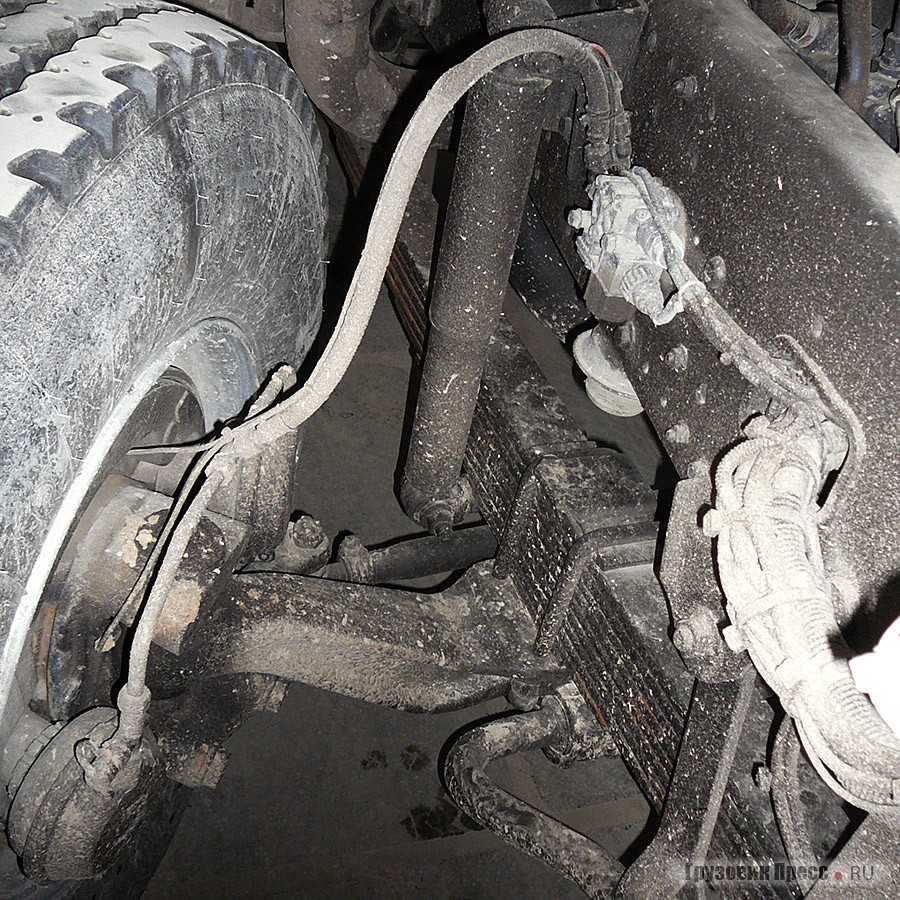 А чтобы порода при погрузке «не проверяла» на прочность детали, расположенные между кузовом и кабиной, предусмотрен небольшой козырек. Кстати, он является хорошей демонстрацией того, как можно совместить его с выводом выхлопной трубы вверх…