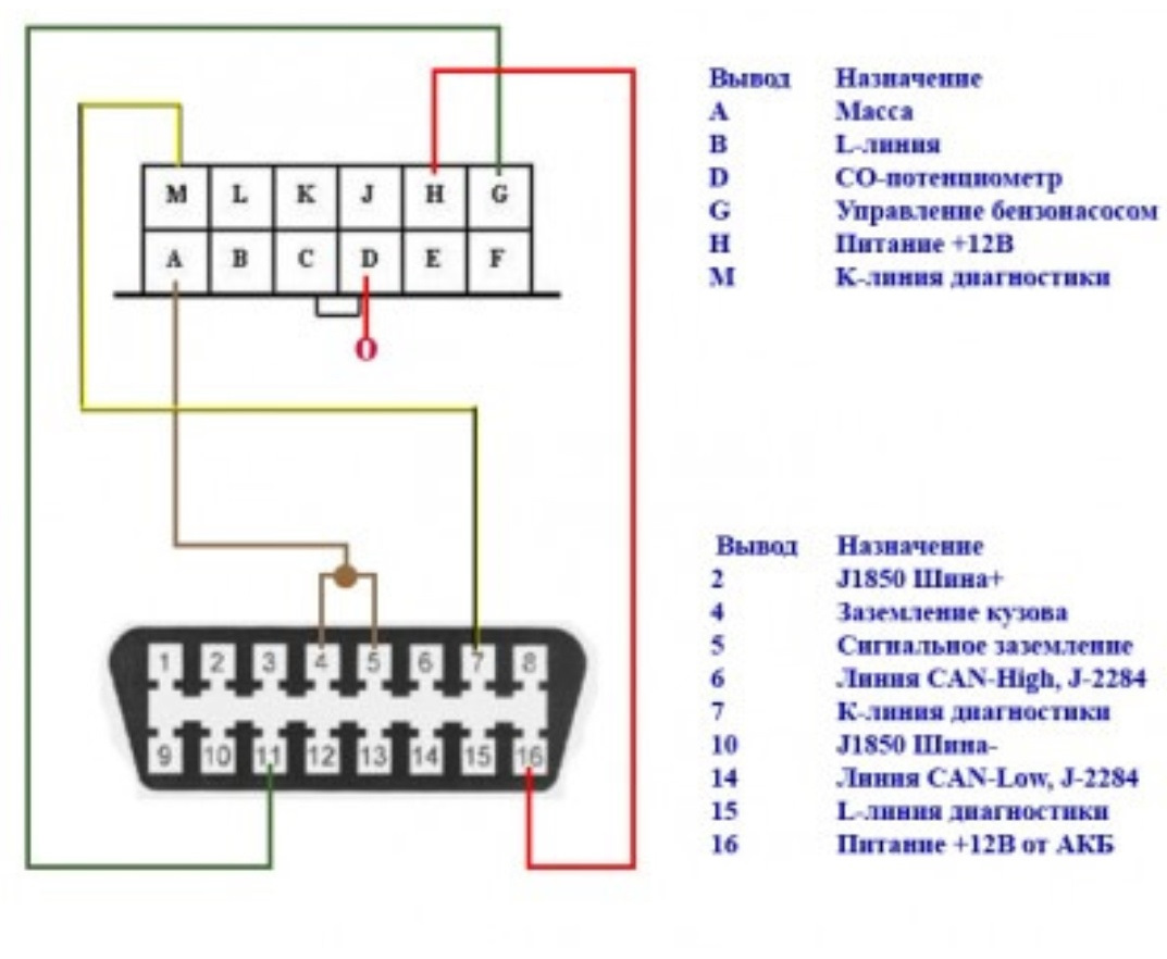 - Требуется распиновка диагностического разъема. Принципиальная схема прилагается.