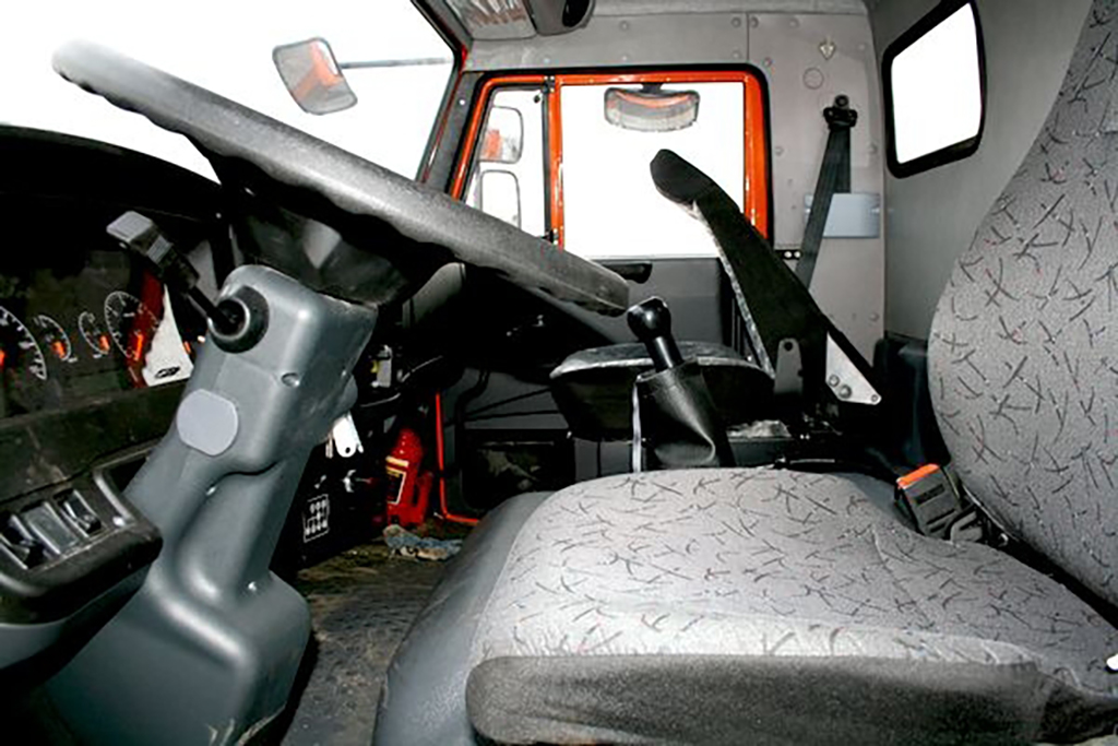 Положение кабины, а именно её высота, удерживается на постоянном уровне, на который не влияет степень загрузки транспортного средства. Водительское кресло также снабжено «пневматикой» и боковой поддержкой.