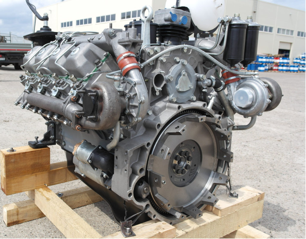 Средство перевозки оснащено двигателем, который представляет по конструкции современное 4-тактное устройство, работающее на дизеле. Мотор характеризуется V-образным уникальным расположением установленных цилиндров, а также форсунок закрытой категории. В общем составе стандартной силовой установки присутствует особый, работающий в разных режимах регулятор уровня частоты рабочего вращения. Также есть специальный сухой работающий воздушный качественный фильтр со встроенным индикатором общего уровня засоренности и качественной сменной фильтрующей деталью.