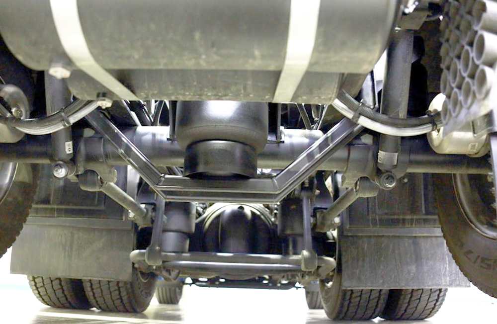 Конструкцию подъемной оси разработал партнер компании — НПО «РОСТАР», а пневматическую систему – Wabco. Если нагрузка на ведущий мост повышается, происходит автоматическое перераспределение. Автоматика равномерно нагружает все оси, гарантируя сцепление и соблюдение требований осевых нагрузок. Водитель может принудительно увеличить нагрузку на переднюю ось, чтобы исключить пробуксовку колес.