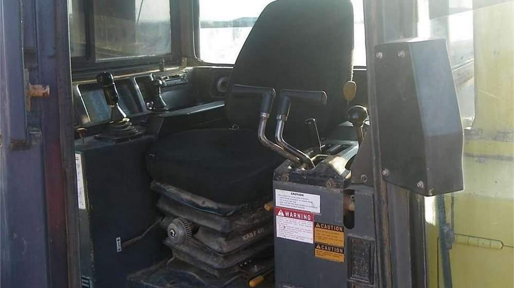 В салоне Komatsu D275A-5 стоит настраиваемое сидение с упругой подвеской. Водитель может вращать сиденье на 15 градусов, это значительно улучшает обзор. Органы регулирования КП двигаются синхронно с сидением.