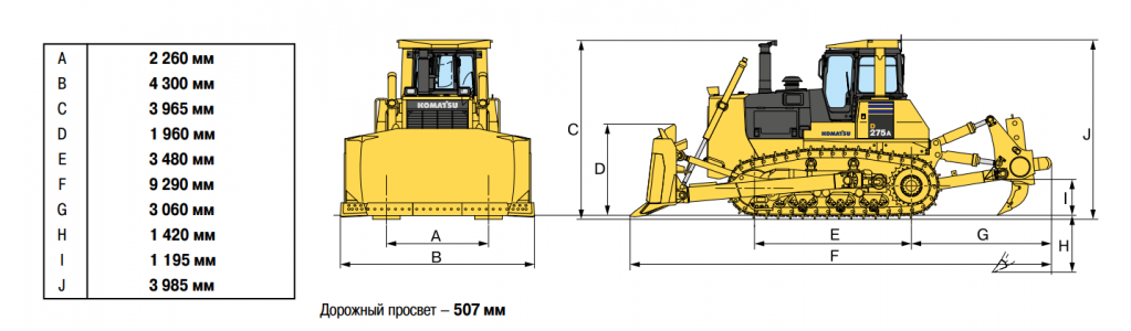 Опорная площадь составляет 42 456 см2. Удельное давление на грунт (бульдозерного отвала) – 118 кПа (1,20 кгc/см2).
