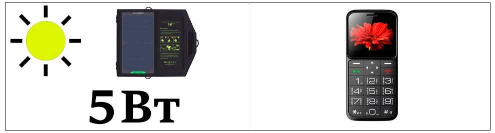 На самом деле маленькие панели чуть меньше листа бумаги выдают мощность около 5Вт и способны зарядить только небольшой и маломощный девайс. Например, кнопочный телефон.