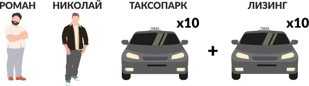 Роман и Николай, два брата-предпринимателя, решили расширить свой бизнес. С 2008 года Роман Александрович Белый оформил статус индивидуального предпринимателя и держит таксопарк в родном городе-миллионнике. Недавно при моральной поддержке брата он оформил в лизинг несколько новых легковых автомобилей. У ИП было в распоряжении десять седанов черного цвета. После одобрения заявки на лизинг парк увеличился еще на десять новых седанов черного цвета.