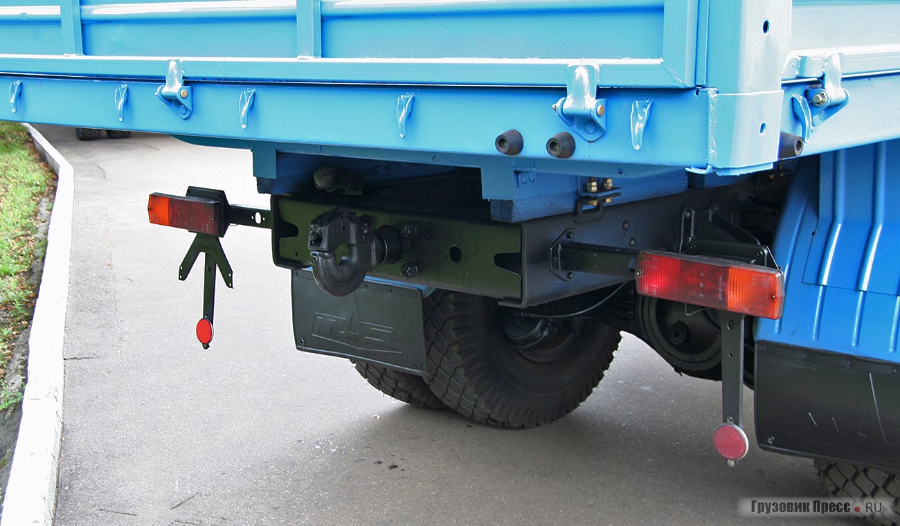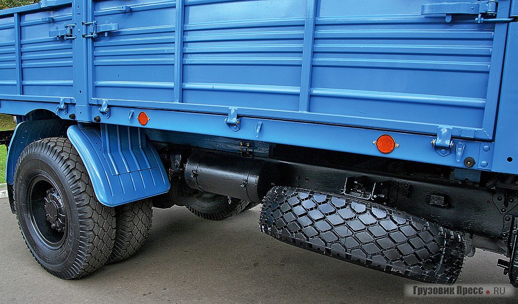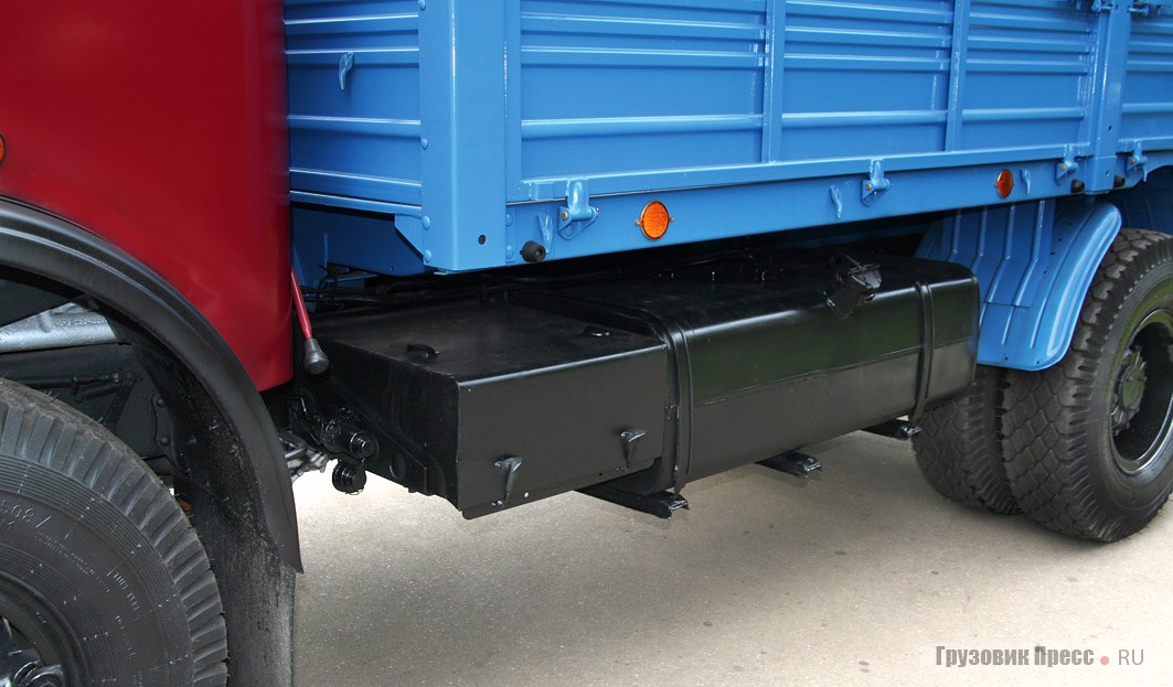 Под кузовом слева по ходу движения разместили ящик для аккумуляторных батарей и топливный бак объемом 200 л. Справа в горизонтальном положении на откидном кронштейне подвешено запасное колесо. На седельных тягачах такое крепление было невозможно, поэтому «запаску» размещали за кабиной.