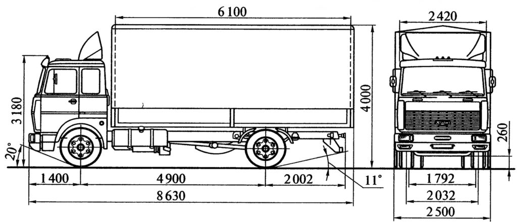 - Распределение полной массы: на переднюю ось – 6,5 тонн; на заднюю ось – 11,5 тонн.