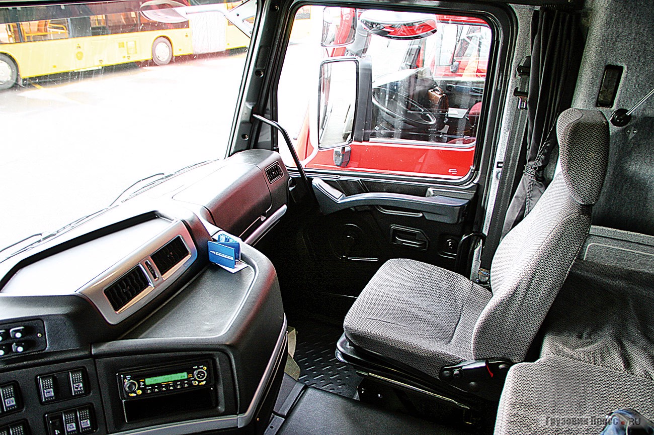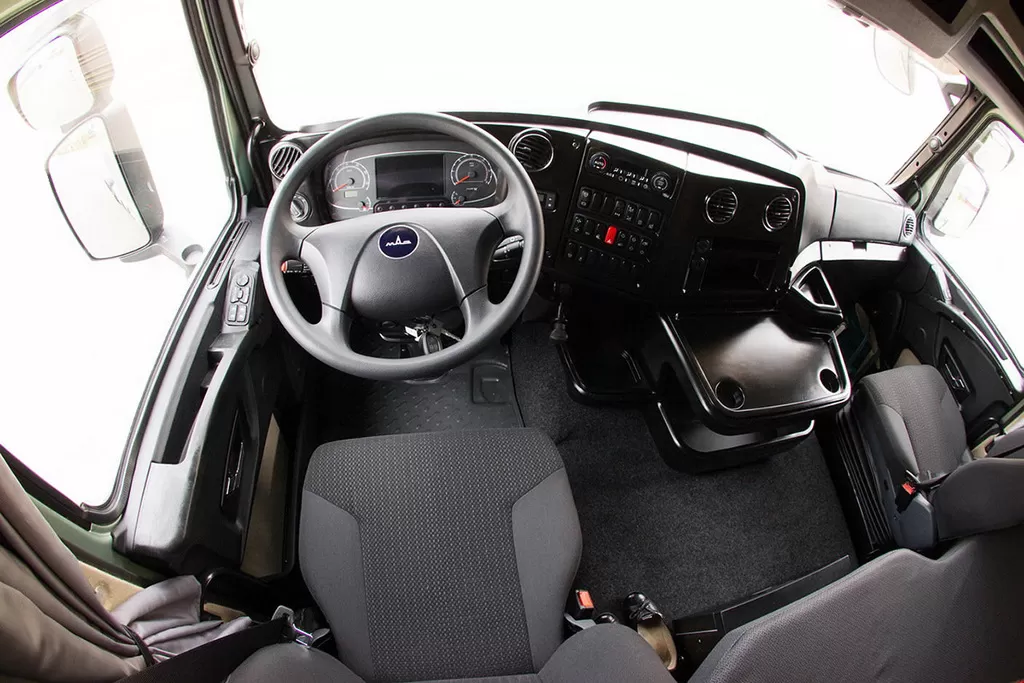 Отдельное внимание уделено комфорту водителя, что выражается увеличенным пространством внутри. Кресло шофера имеет пневматическое основание, которое гасит колебания при движении по плохим дорогам