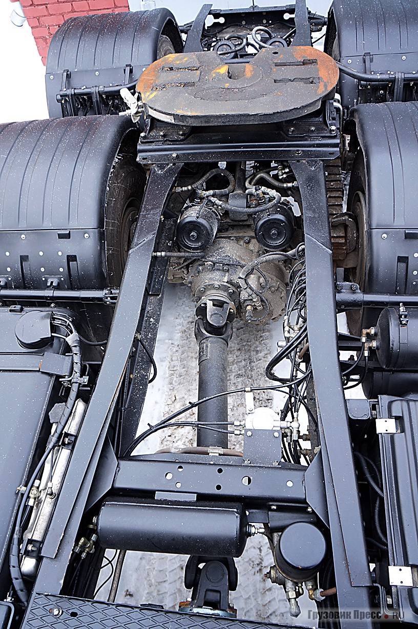 Шестнадцатиступенчатая коробка передач модели ZF 16S2520TO поставляется из Германии. Она состоит из основного четырехступенчатого редуктора, переднего двухступенчатого делителя передач и демультипликатора. Все передачи переднего хода в основном редукторе включаются синхронизаторами, задняя передача – зубчатой муфтой.