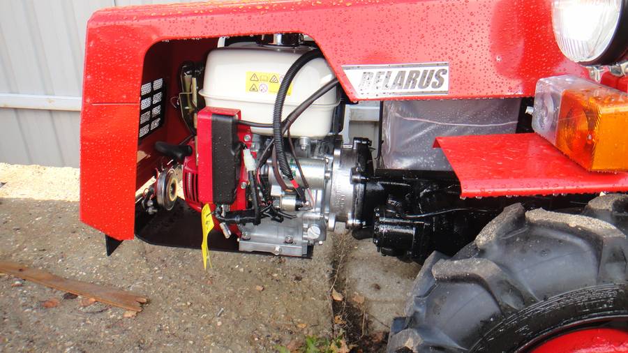 Минитрактор Беларус оборудован надежным двигателем Honda GX390 (11 л.с.), который имеет высокие характеристики КПД и увеличенный срок эксплуатации. Благодаря этому можно приводить работы даже с тяжелым навесным оборудованием.