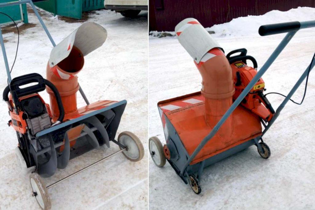 - Снегоуборщик из бензопилы.