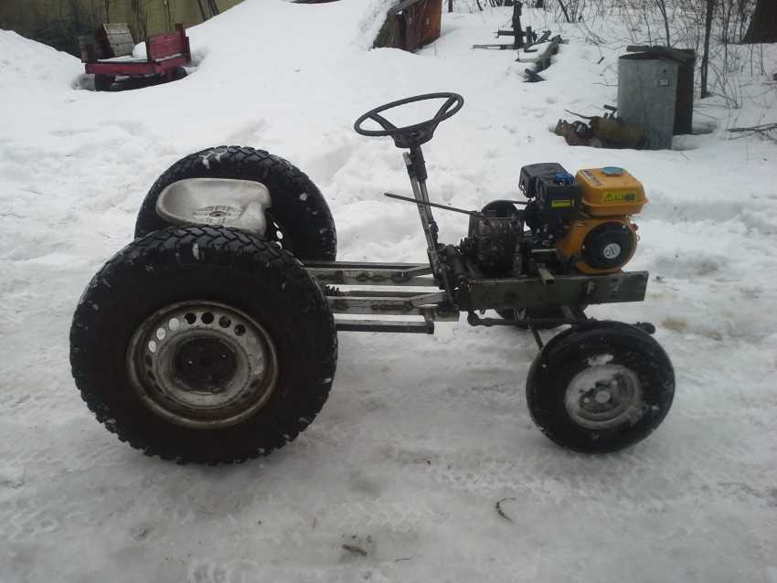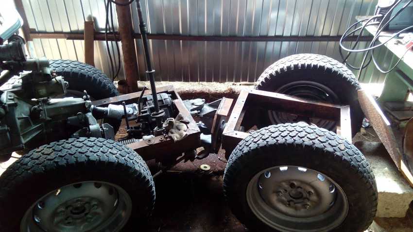 - Передние колеса можно снять все с того же автомобиля Ока. Они должны быть диаметром около 13-16 дюймов. Задние колеса, соответственно, следует подбирать побольше, с усиленным протектором и диаметром не менее 20 дюймов.