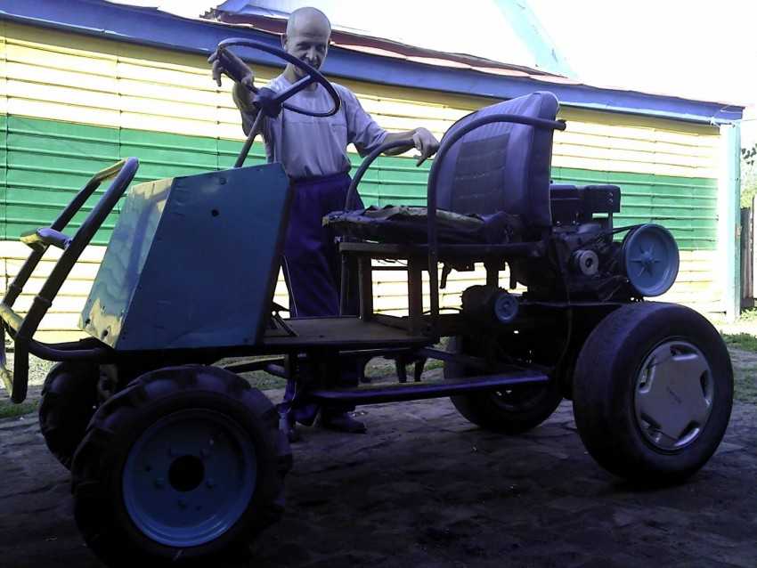 Нередко при изготовлении самодельных тракторов мастера используют моторы от автомобилей. Например, можно встретить минитракторы с двигателем от Оки.