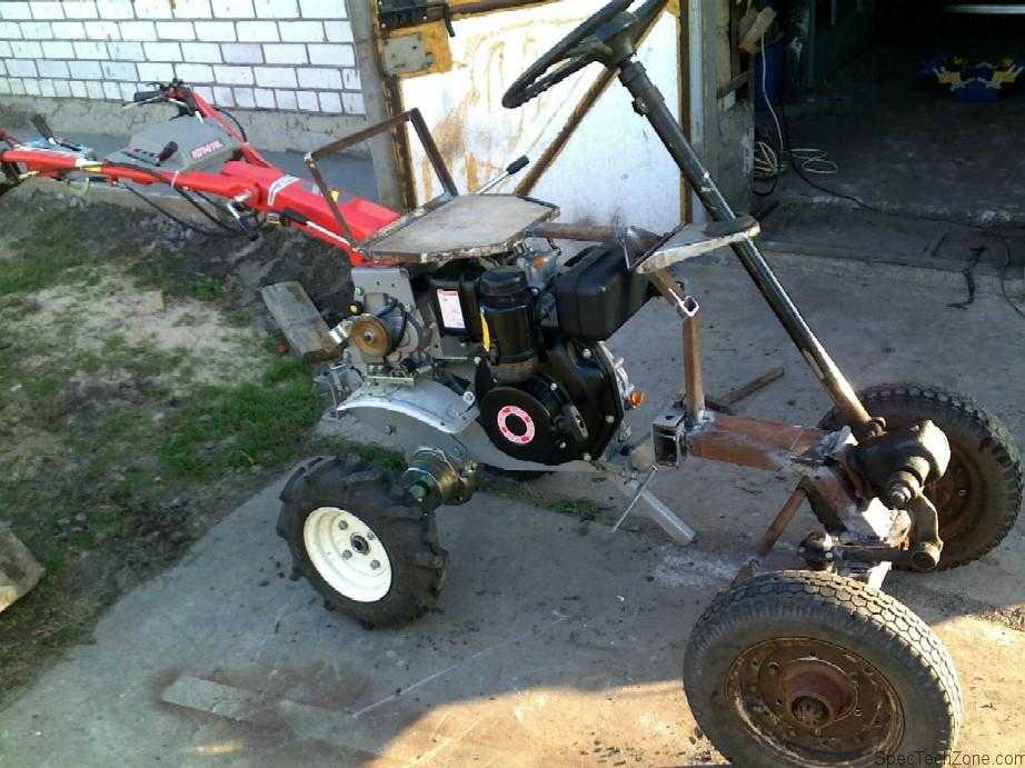 Мини-трактор своими руками можно сделать различными способами. Это зависит в первую очередь от того, какой из мотоблоков будет взят за основу. Однако существует стандартный вариант, к которому прибегают чаще всего.
