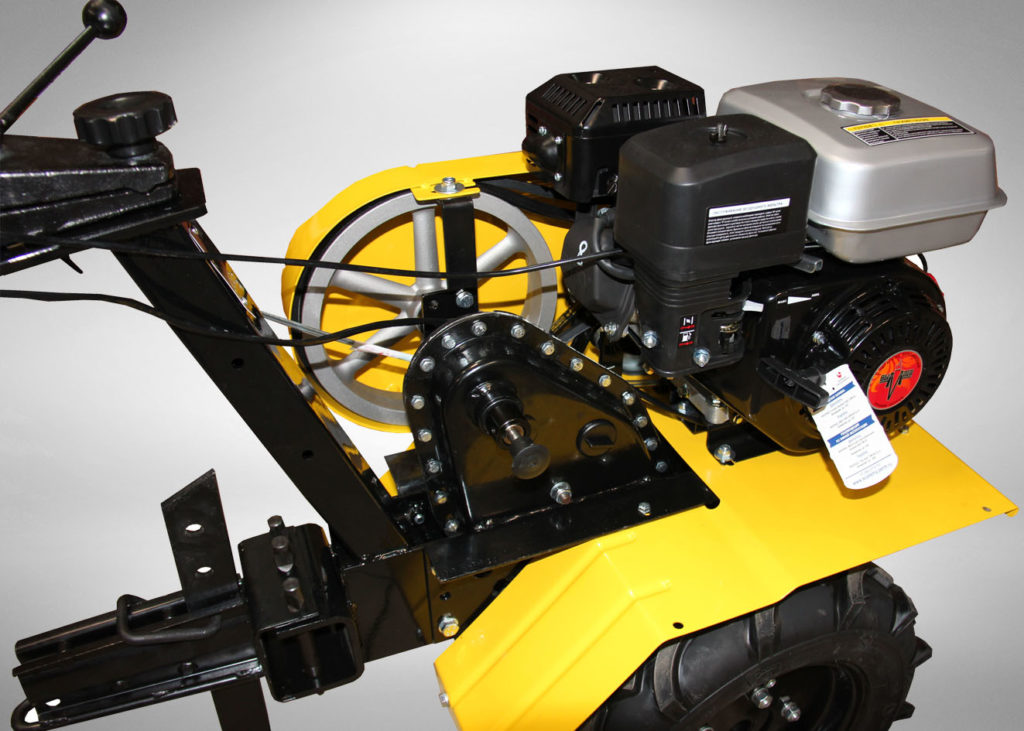 - Силовой блок: высокооборотистый, малошумный; функционирует в 4-тактном режиме; приспособлен для вспашки любых типов почв на больших площадях;