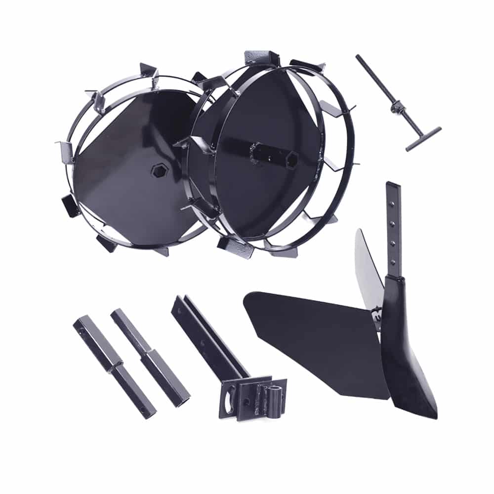 Двигатель мини-трактора весит мало и расходует незначительное количество топлива. Крепление спереди рулевой колонки даёт возможность комфортно управлять сельхозмашиной. Шкив обеспечивает возможность подключения роторной сенокосилки и отвала (снегоуборщика). Российские конструкторы разработали сцепку, дающую возможность установить навесное оборудование в виде плуга, окучника, культиватора или использовать другие насадки. Среди них может быть грунтозацеп, щётки для сбора мусора, тележки для транспортировки, фрезы различных видов.