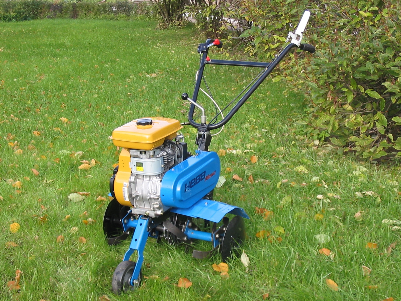 - каждая модель в комплектации имеет опорное колесо, расположенное спереди. Оно улучшает мобильность машины на грунте при надетых фрезах, позволяет оператору легко транспортировать технику к нужной точке;