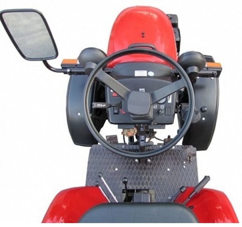 Рулевое управление трактором – очень лёгкое. Несмотря на то, что для вращения рулевого колеса нужно прилагать определённые усилия, это не легковушка с гидроусилителем. Радиус поворота и разворота небольшой, свободно маневрировать можно даже в самых стеснённых условиях.