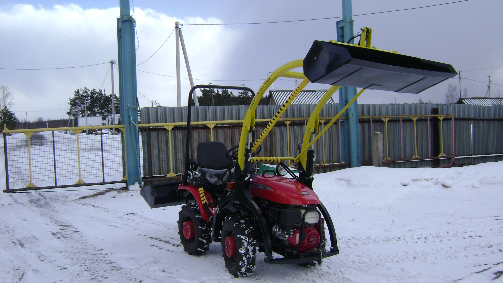 - Эксплуатационная масса минитрактора (с балластными грузами) — 710 килограмм.