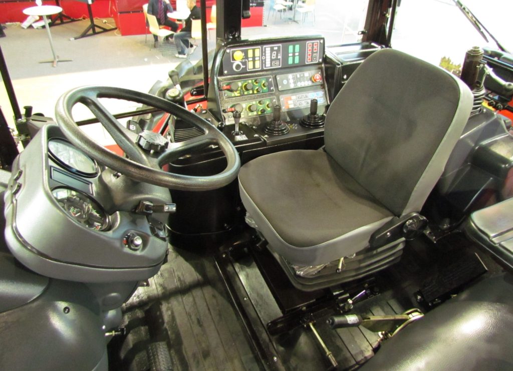 Пост управления скомпонован таким образом, что есть возможность удобной работы в режиме реверса. Рабочее место одно, но в кабине есть и дополнительное сиденье.
