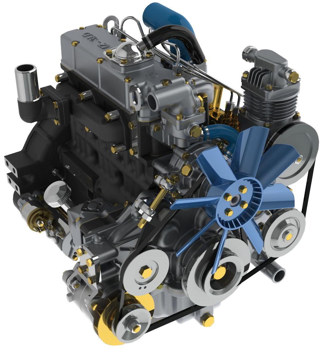 На трактор ставятся 4-х цилиндровые четырехтактные турбированные дизельные моторы производства компании Ламборгини, 62.5 лошадиных сил.