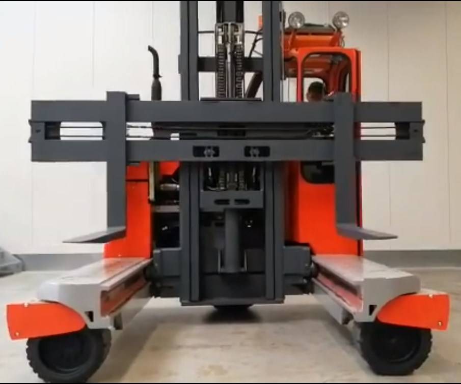 Данная модель сочетает в себе ричтрак, вилочный и боковой автопогрузчик. Добиться такой универсальности получилось благодаря особенной конструкции: мачта рамочного типа выдвигается по горизонтали. Также отличительно особенностью является отдельный привод каждого колеса.