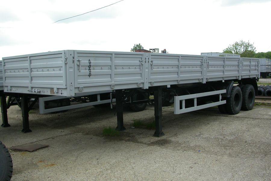- Бортовой полуприцеп — это уже более серьезная модель, которая способна транспортировать груз весом от 14 до 31,5 тонны. Борта здесь тоже откидного типа, прицеп прямоугольный и достаточно длинный. Можно смело нагружать крупным грузом. Подсоединяется к тягачу, но только через седельный тягач.