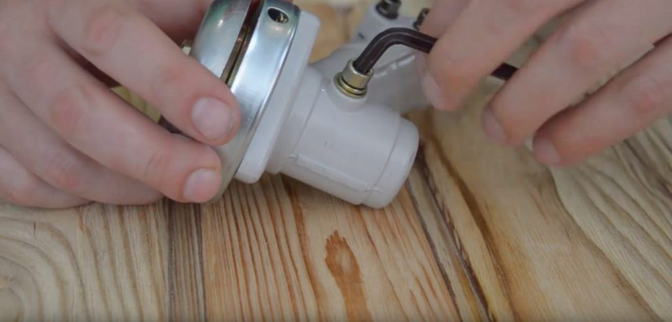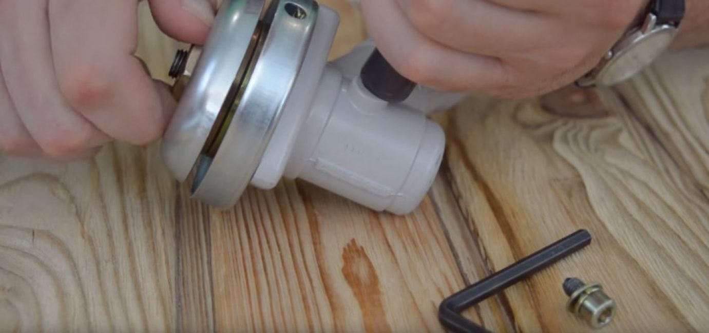 Для того, чтобы получить доступ к редуктору, его следует открыть. Сделать это достаточно просто – нужно при помощи шестигранного ключа открутить редукторный болт. Этот болт у всех мотокос находится в одном и том же месте – непосредственно возле рабочего органа.