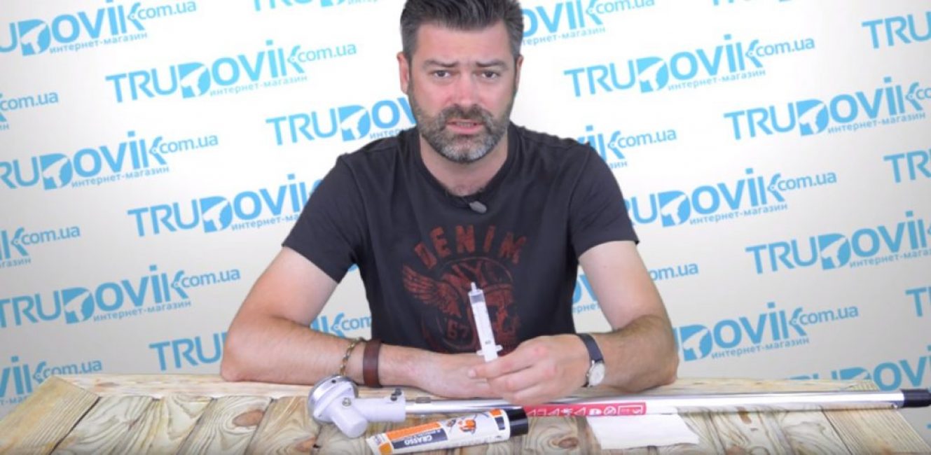 В верхней части корпуса, там, где установлен блок шестерней, имеется технологическое отверстие, которое при эксплуатации триммера заглушено винтом. Этот винт выкручивается, и в отверстие при помощи носика, имеющегося на тюбике, вводится 1,5…2 мл смазки. Если смазка была приобретена в другой расфасовке, то для данной операции подойдёт и обычный одноразовый медицинский шприц.