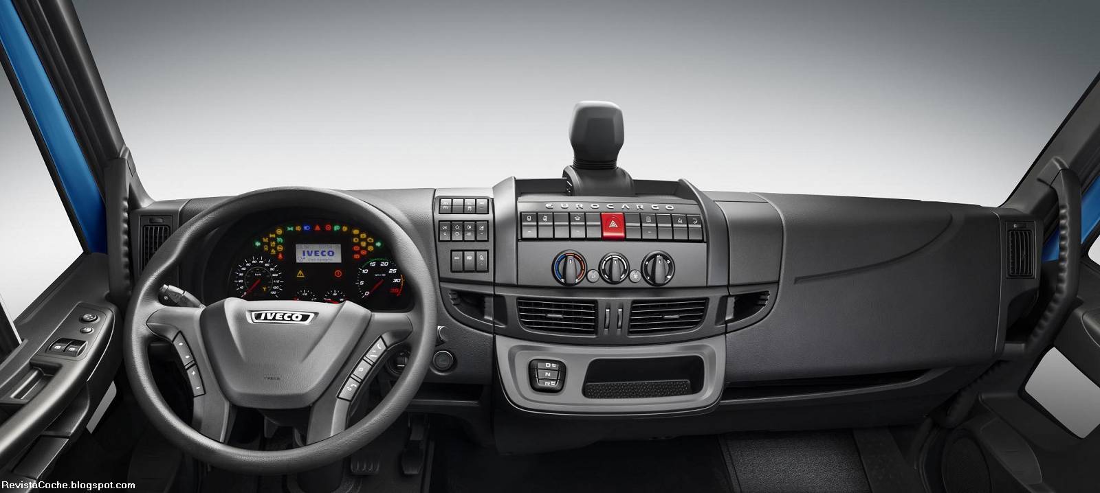 В управлении Ивеко Еврокарго предельно прост. Поворот руля осуществляется плавно и легко за счет наличия гидроусилителя. Высокая посадка, большое лобовое стекло и массивные зеркала (2 основных и 2 дополнительных с каждой стороны) обеспечивают отличный обзор во все стороны. Водительское кресло снабжено множеством настроек и минимизирует усталость даже при длительных поездках.