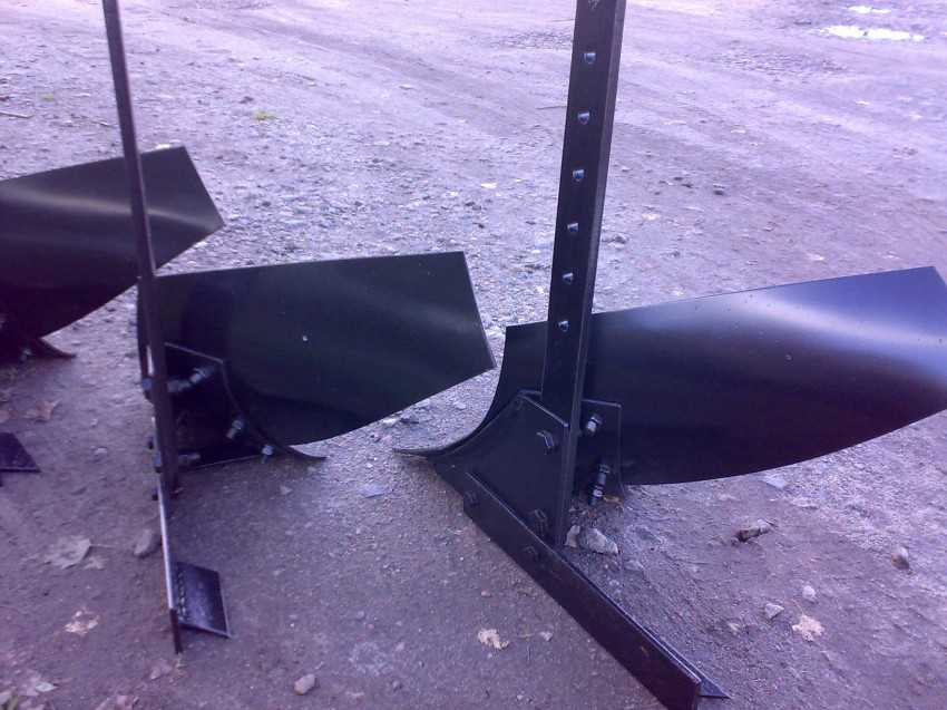 Чаще всего мастера работают с двухкорпусным плугом с лемехами и отвалами. Его можно дополнять предплужниками, благодаря которым проводят работы по срезу верхнего задернованного слоя земли. Несущий элемент – рама. Для нее используют металлический круглый или прямоугольный профиль толщиной 2-3 мм.
