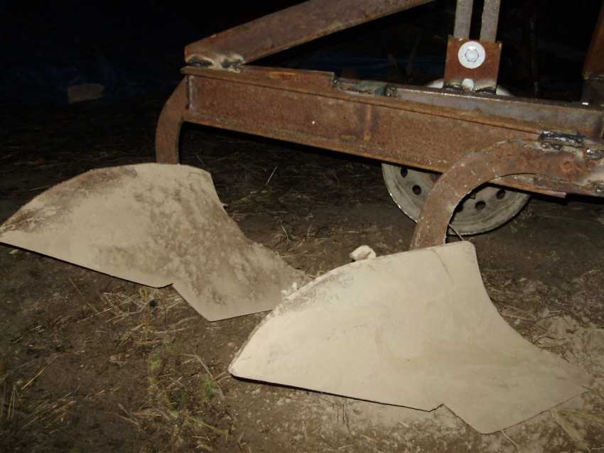 В нижней части всей конструкции располагается лемех. Он состоит из носка, лезвия и пятки. Лемех поднимает пласт земли, который далее двигается к отвалу. Для направления движения агрегата используется полевая доска. Рабочие органы самодельного плуга крепятся к раме при помощи стойки. Корпус плуга делают из легированной стали, для усиления его дополняют рессорной сталью, что особенно необходимо при работе по иссушенным землям.
