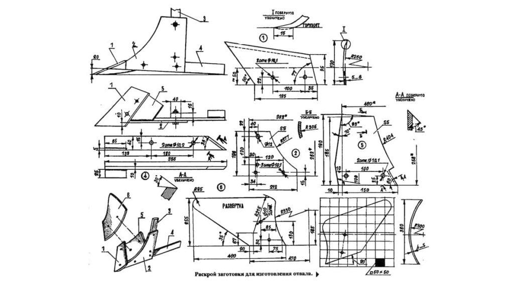 Для грамотного изготовления плуга трактористу придется воспользоваться хорошими чертежами квалифицированных специалистов, поэтому лучше поискать. Некачественный чертеж негативно скажется на последующей конструкции и качестве вспашки почвы, значит, и урожайности. При конструкции самодельного культиватора, напротив, подойдет и схематичный чертеж.