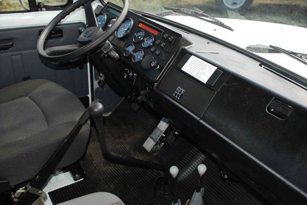 Кроме того она обладает неплохой теплоизоляцией, особенно модификации, предназначенные для эксплуатации в условиях Крайнего Севера. Сиденья изготовлены из искусственной немаркой кожи, что значительно облегчает уход за кабиной. Их размер позволяет разместиться в кабине 1 водителю и 2 пассажирам.