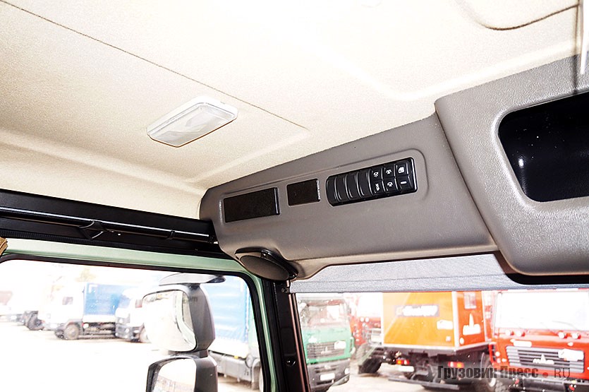 Изменился блок управления климатической системой, под который уместили клавиши управления отопителями (салонный и предпусковой подогреватель). Среди современных опций грузовика электроприводы управления зеркалами и стеклоподъемниками, наличие центрального замка.