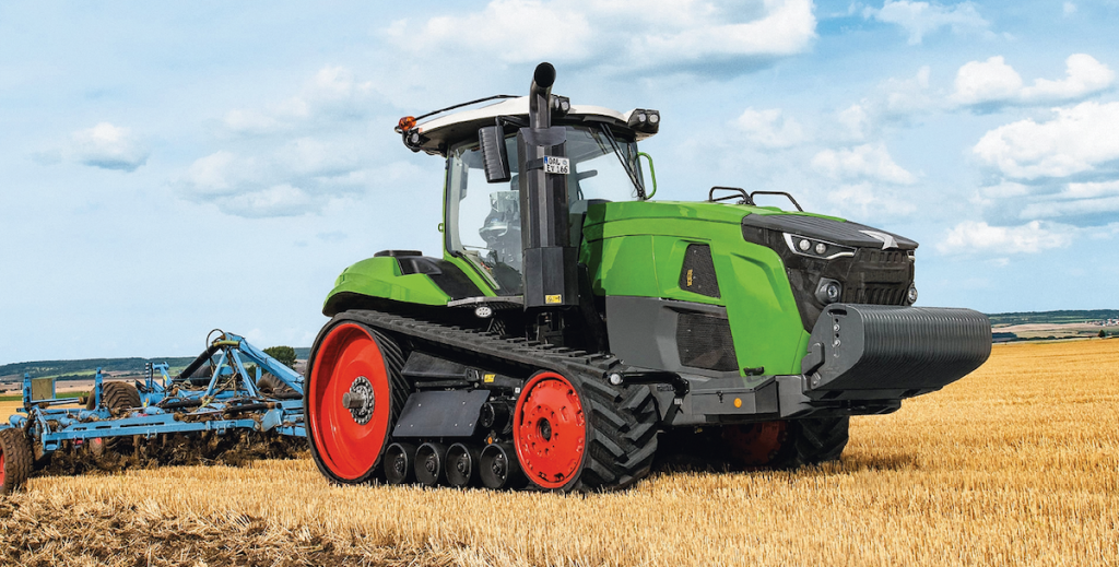 В завершение можно сказать о двухгусеничном тракторе Fendt 1100 Vario MT, имеющем четыре вариации двигателя мощностью от 511 до 673 л. с. Транспортная ширина 3 м легко поддерживается при ширине колеи 2286 мм в сочетании с гусеницами на 698 мм. Их база в 3000 мм обеспечивает максимальную поверхность контакта с почвой для большего сцепления, меньшего давления на грунт и оптимального распределения веса по всей площади контакта даже в случае внушительной нагрузки. Четыре ролика гусеничного привода гарантируют постоянную передачу мощности. Шасси с помощью запатентованной системы подвески непрерывно и гибко адаптирует гусеницу к контуру рельефа. В итоге вес всегда распределяется по максимальной площади контакта, и вся гусеница постоянно соприкасается с почвой. Для решения проблемы нагрева было внедрено определенное решение: катки имеют специальное полиуретановое кольцо, предотвращающее выделение тепла даже при непрерывной работе на высоких скоростях. Направляющие блоки на внутренней стороне протекторов также защищены подобным образом.
