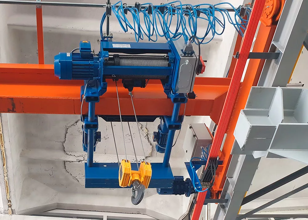 - Перемещение по пролётной балке в двух направлениях (по горизонтали и вертикали). Устройство приводится в движение приводом, управление которым осуществляется с помощью пульта.